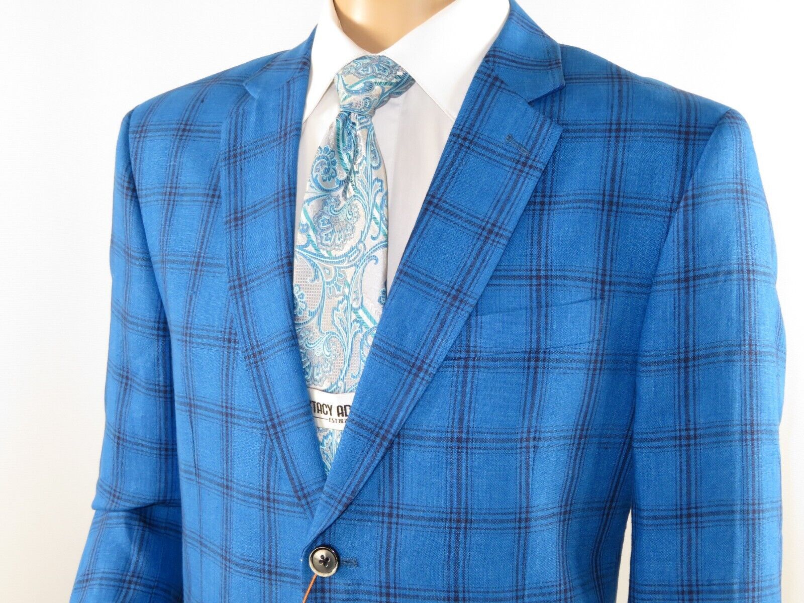 Mens 100 Linen Sport Coat Plaid Design Inserch Fully Lined 660131 Royal Blue Walmart Com